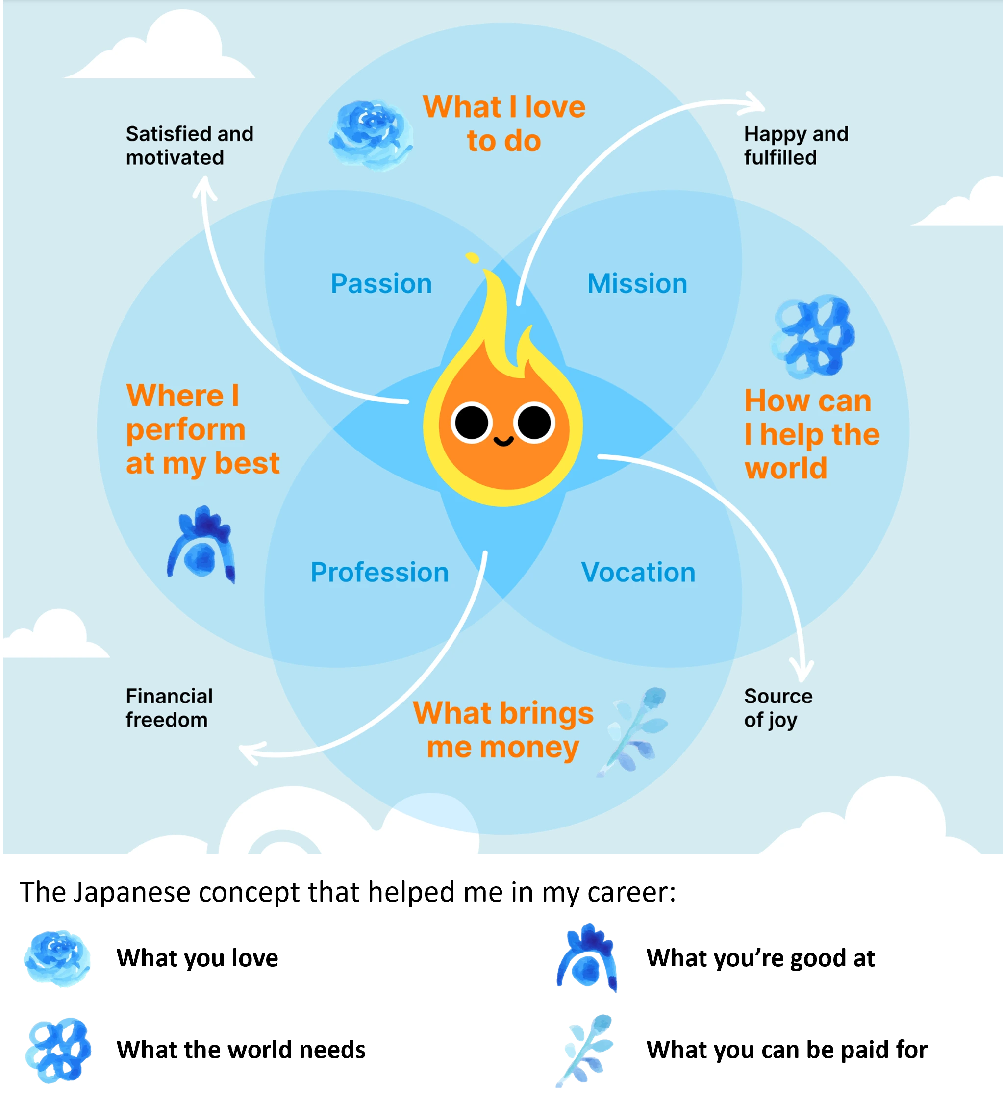 That’s when I discovered Ikigai, the Japanese concept that means “reason for being.” It’s the intersection of four powerful elements: